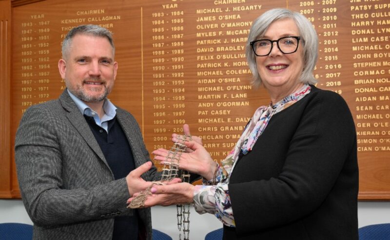 Outgoing Chairperson Cian O’Mahony of Cumnor Building and Civil Engineering Contractors handed over the chain at the organisation’s AGM held in Little Island.